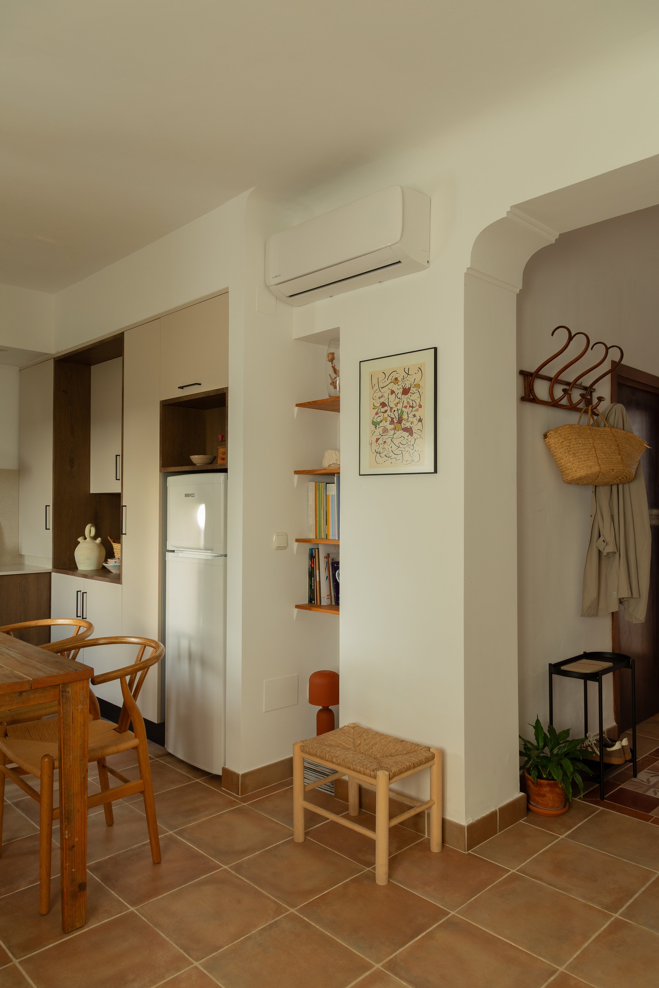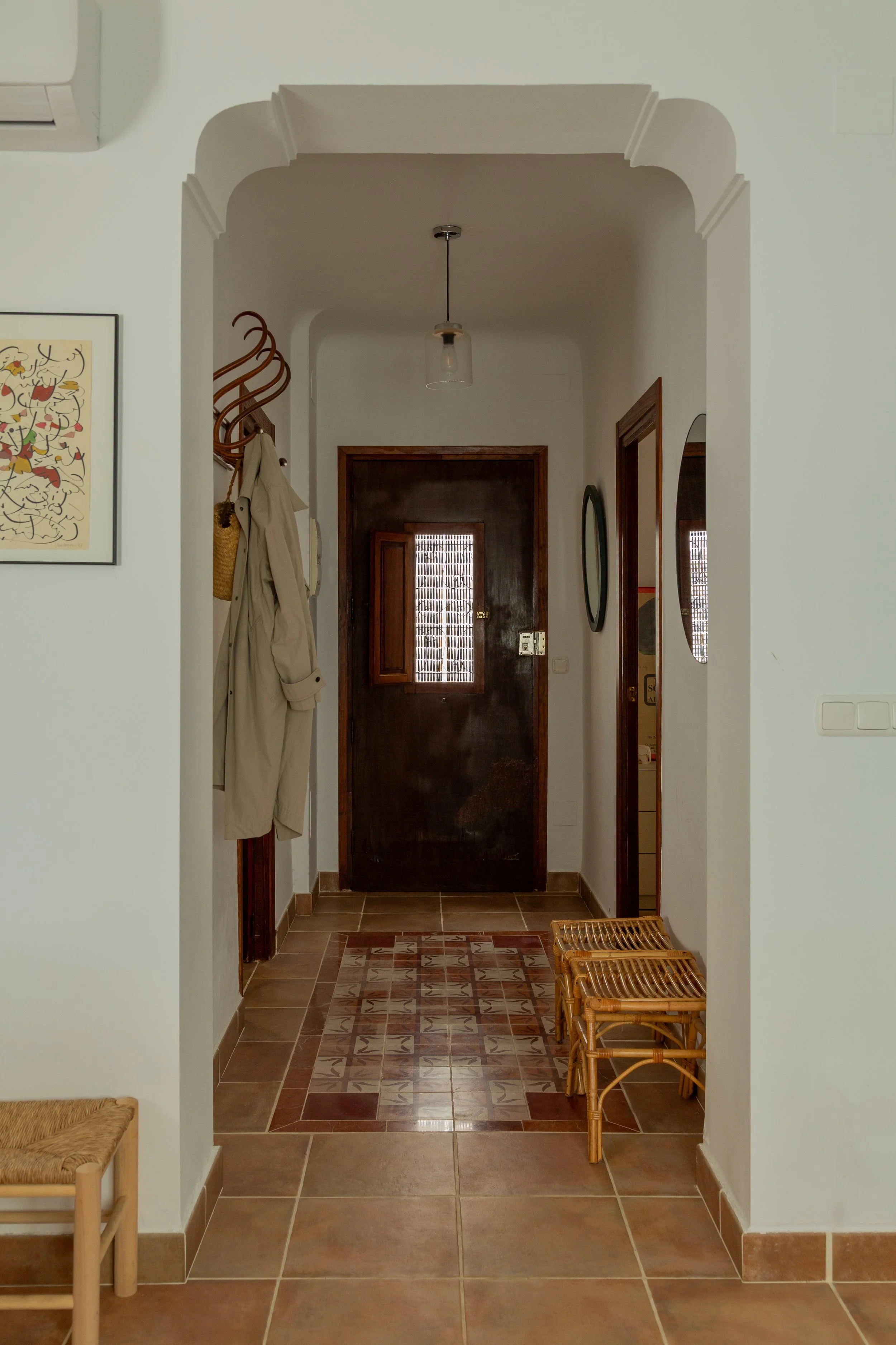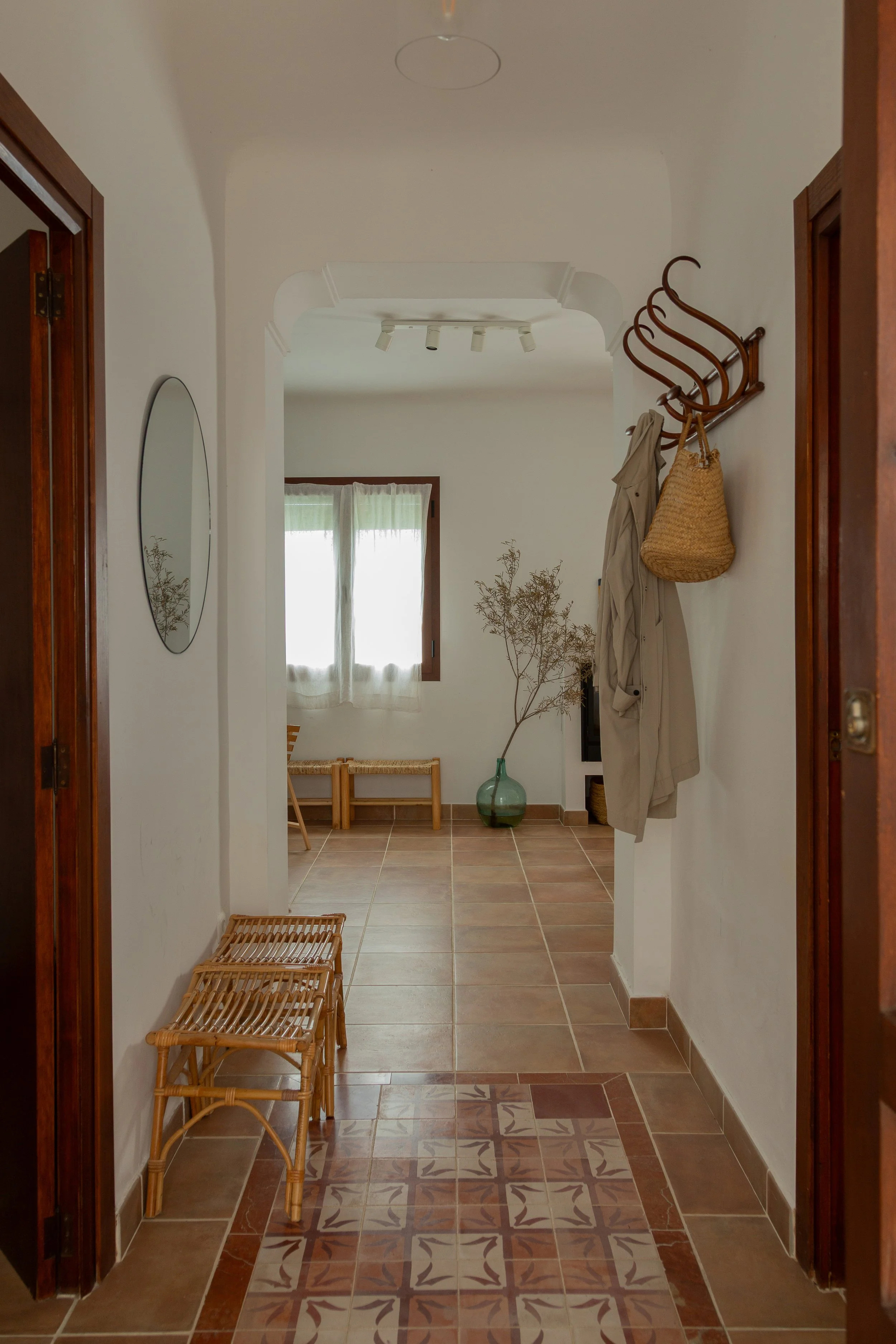 Cerámica, madera y yeso son la base de un proyecto que no deja de lado la tradición del lugar sino que la actualiza. Destaca la alfombra de pavimento hidráulico recuperado de hidrauliq que, a modo de guiño, dignifica el espacio central que es recibidor y distribuidor a la vez.