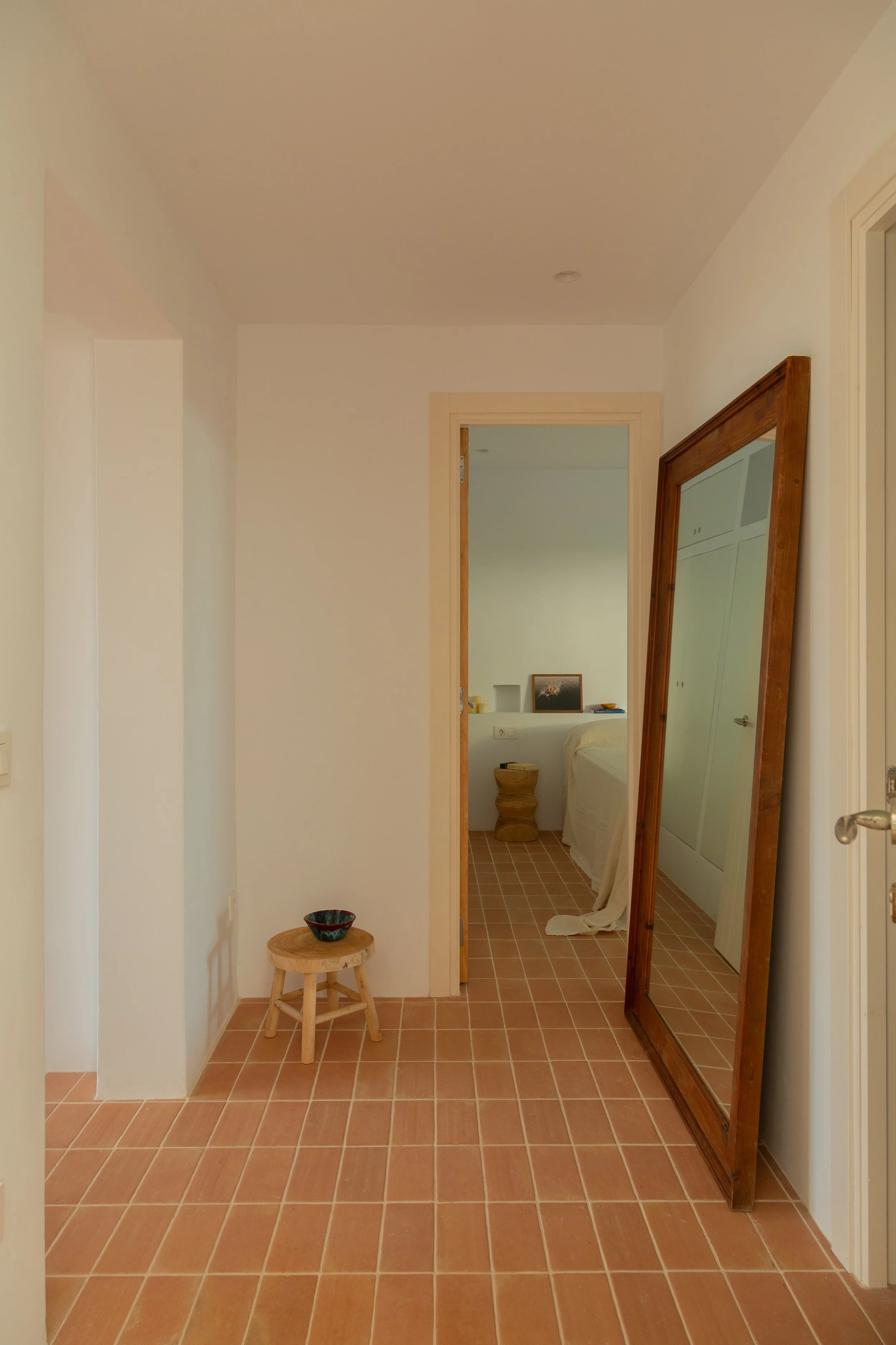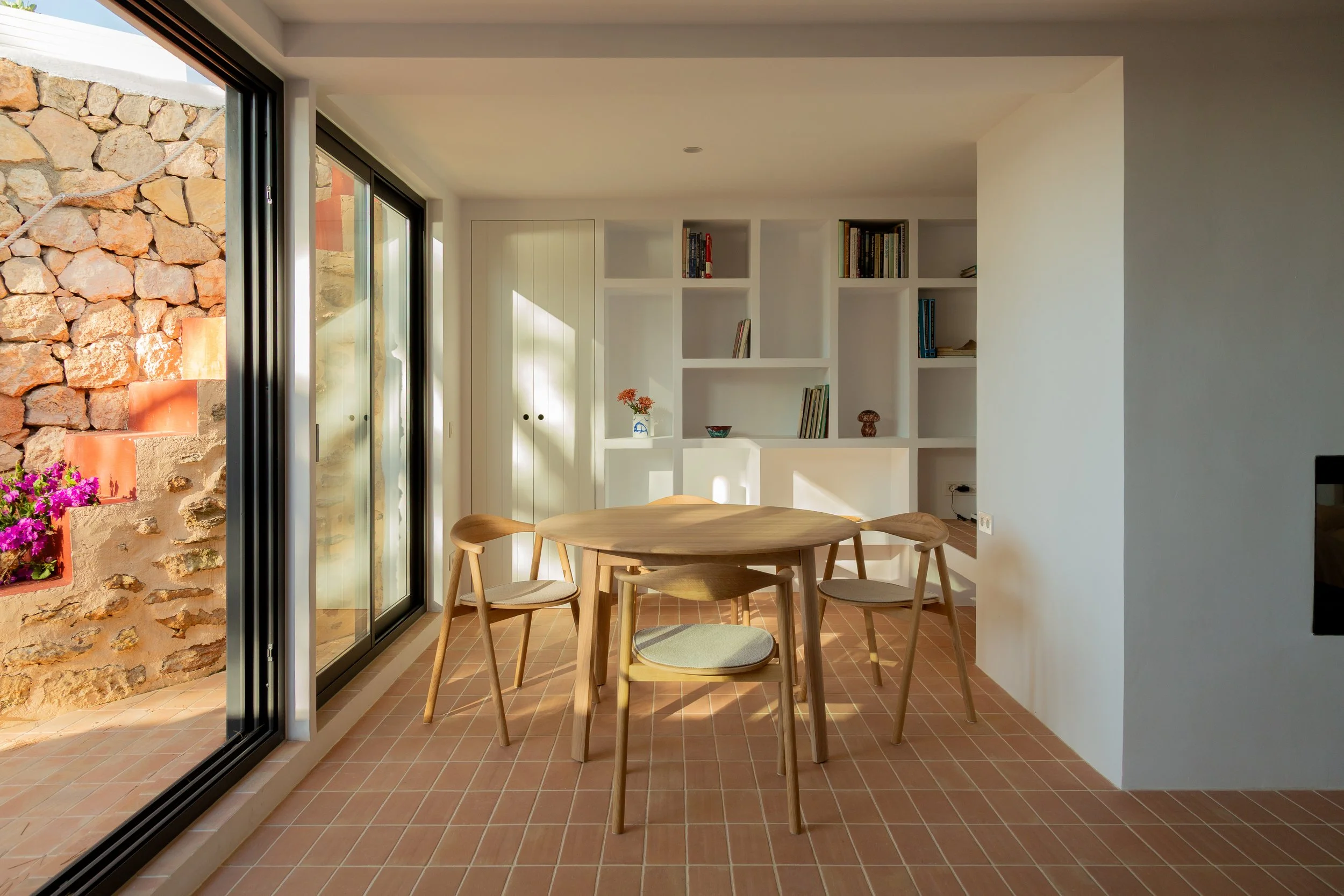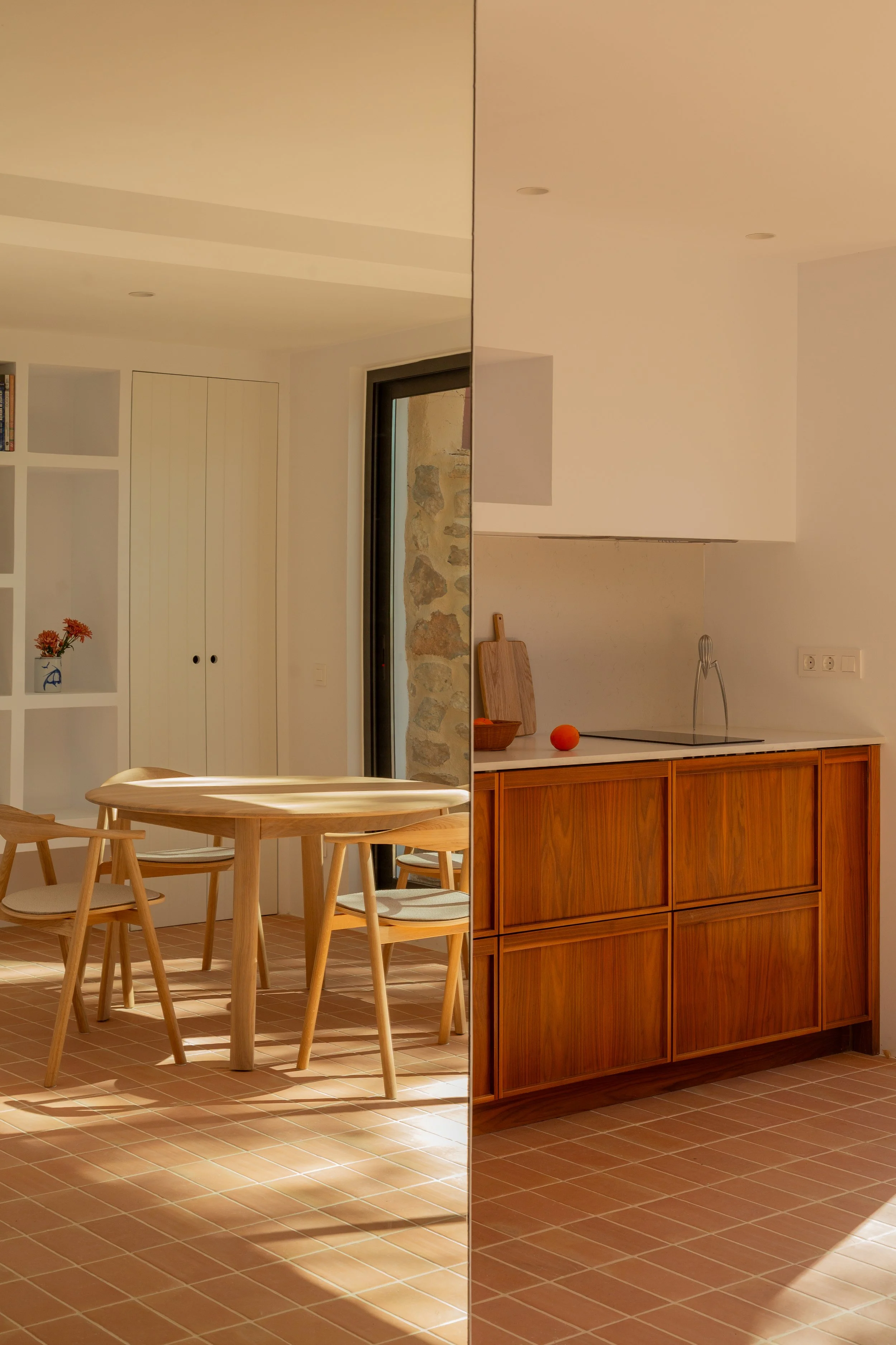 En un afán por recuperar su esencia primigenia, el proyecto se concentra en potenciar los elementos naturales del lugar. La luz, el barro, la madera, la piedra... Una materialidad común acompaña los espacios y lleva la luz desde la zona más abierta de la casa, que vuelca a la terraza, a la más recogida, las habitaciones.