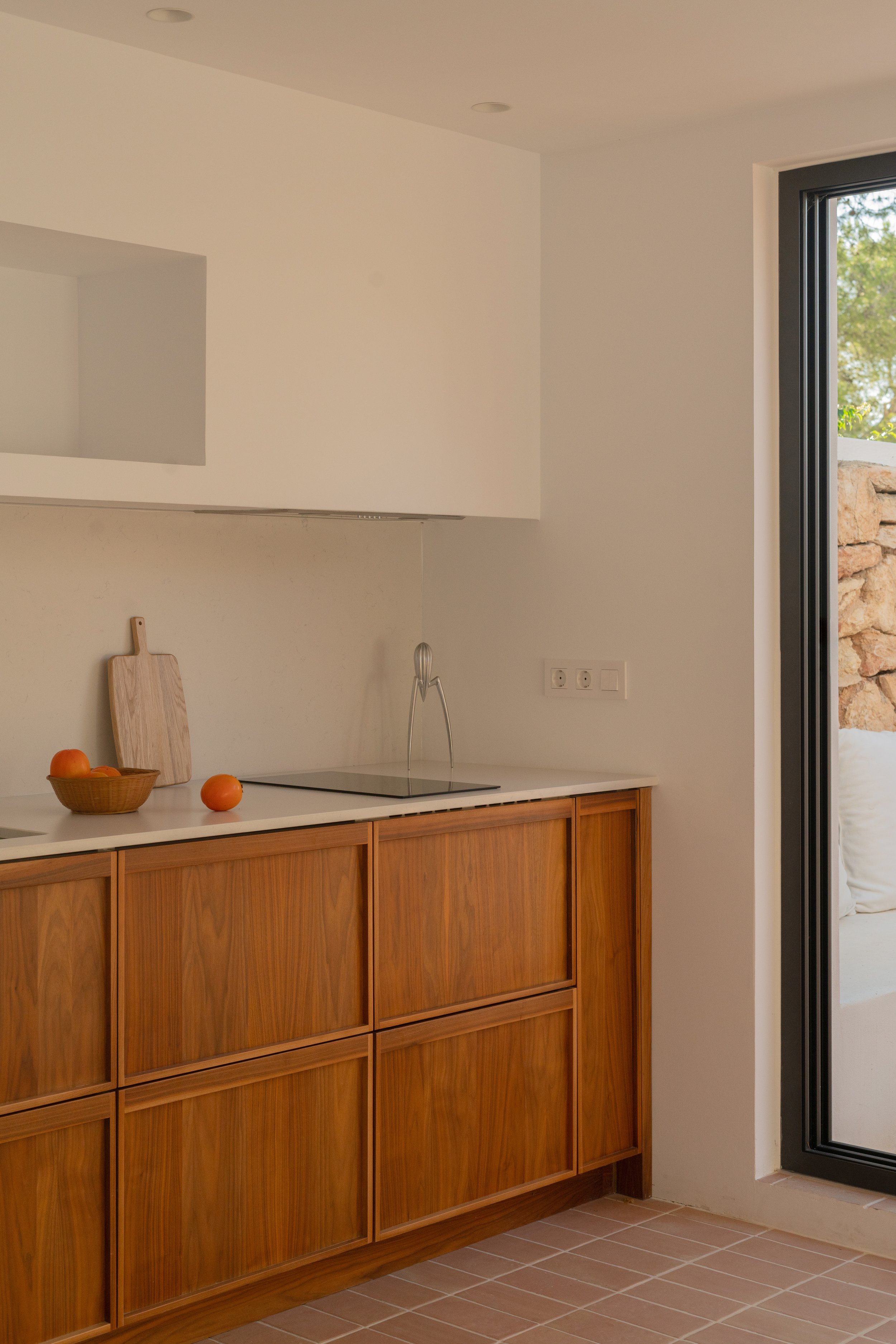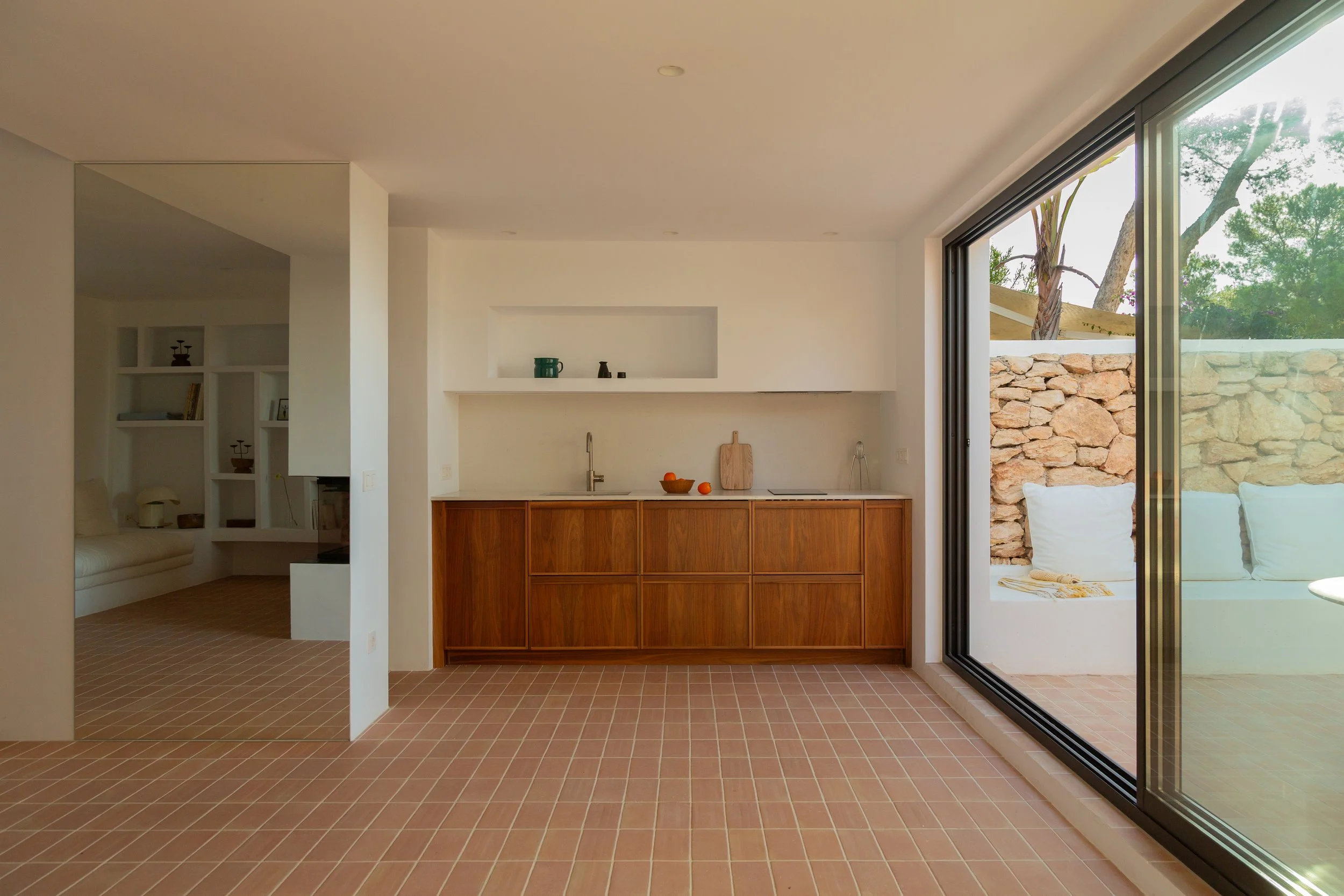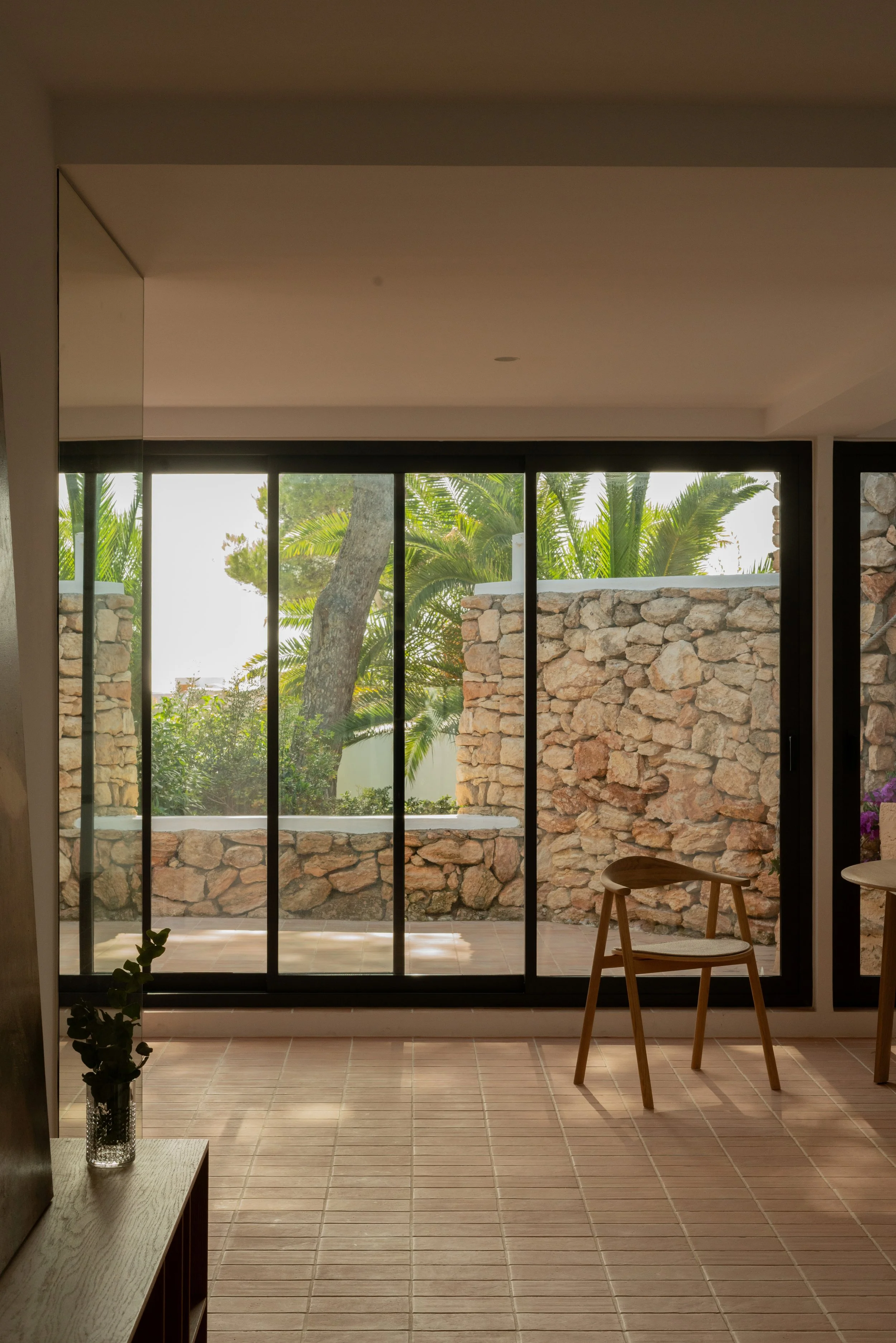 En un afán por recuperar su esencia primigenia, el proyecto se concentra en potenciar los elementos naturales del lugar. La luz, el barro, la madera, la piedra... Una materialidad común acompaña los espacios y lleva la luz desde la zona más abierta de la casa, que vuelca a la terraza, a la más recogida, las habitaciones.