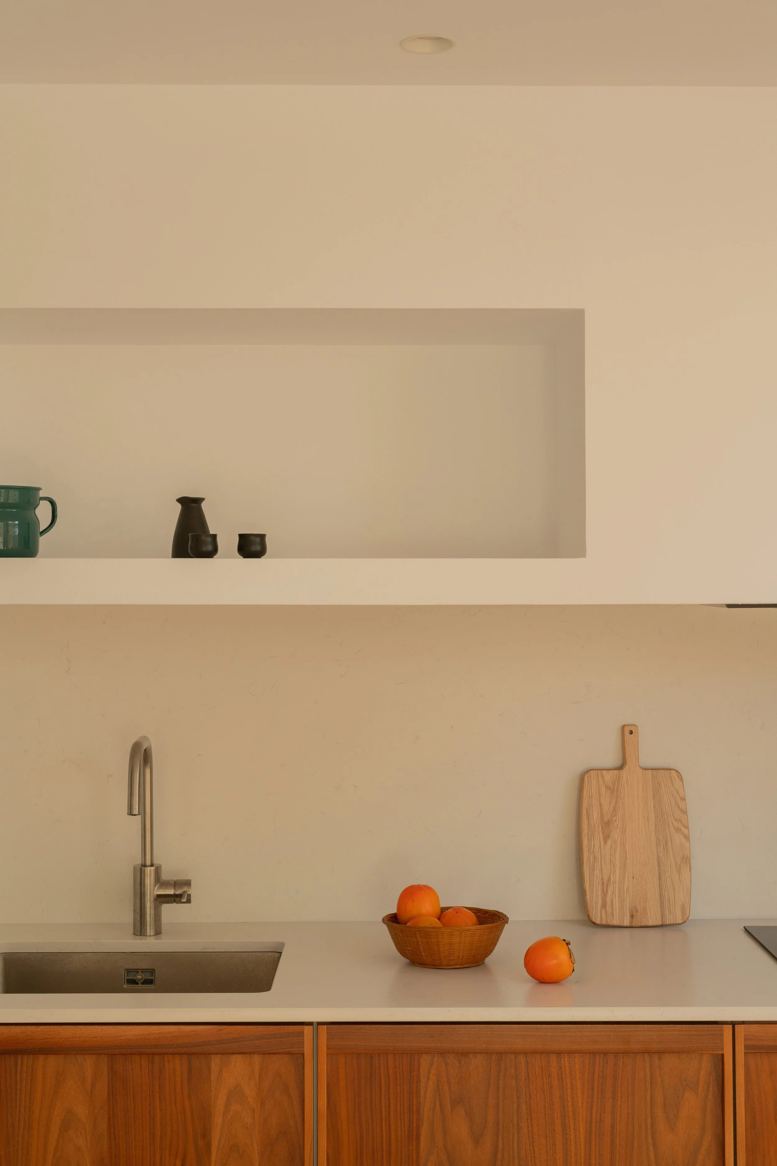 Se busca un lenguaje en concordancia con el resto de la vivienda, y siguen apareciendo elementos de obra, algunos de ellos preexistentes y recuperados.
